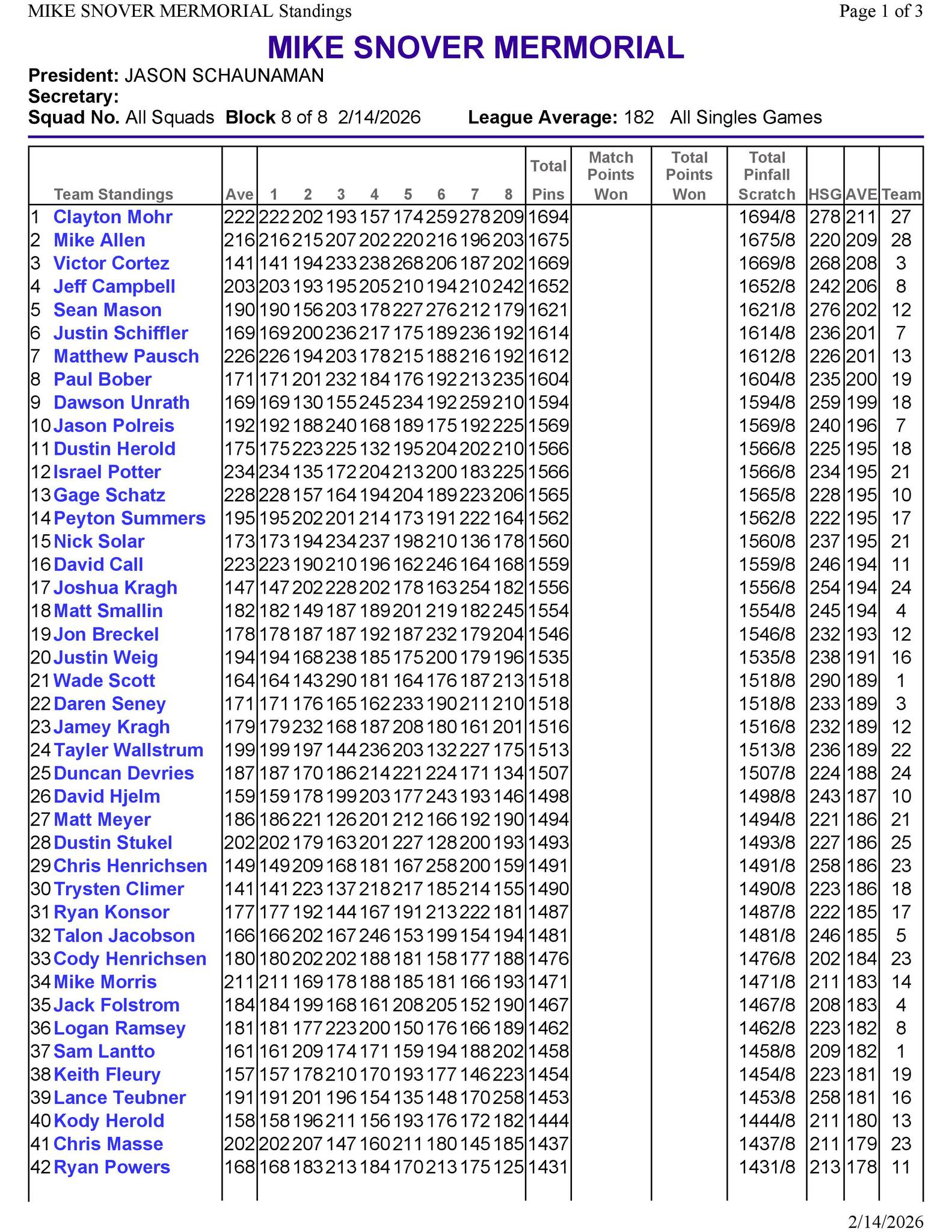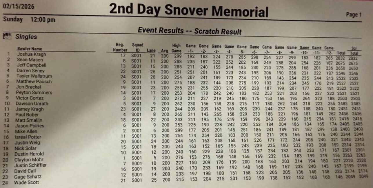 2026 Mike Snover Memorial – Village Bowl | Aberdeen, SD